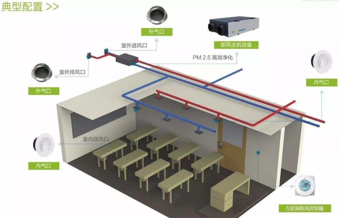 3、為了節(jié)約能源,減少空氣調(diào)節(jié)、制冷和供暖負(fù)荷,提高室內(nèi)舒適性,選用標(biāo)準(zhǔn)全熱交換器的新風(fēng)機(jī),全熱交換器是對(duì)過(guò)冷或過(guò)熱的室外空氣進(jìn)行預(yù)處理,然后將其帶入室內(nèi),避免冷熱空氣直接進(jìn)入室內(nèi),導(dǎo)致學(xué)生感冒。